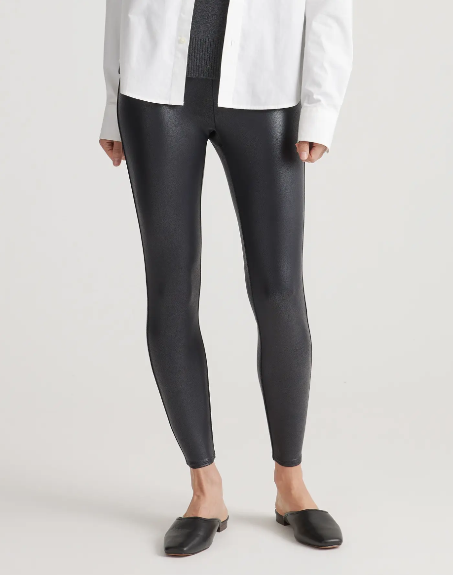 These high-waisted faux leather leggings bring a polished edge to any winter outfit. A great pair of pants for those colder months, they add a sleek, modern touch to your wardrobe, pairing effortlessly with a chunky knit sweater or a classic t-shirt for casual outings. Their faux leather finish gives a luxe look without the high-end price.