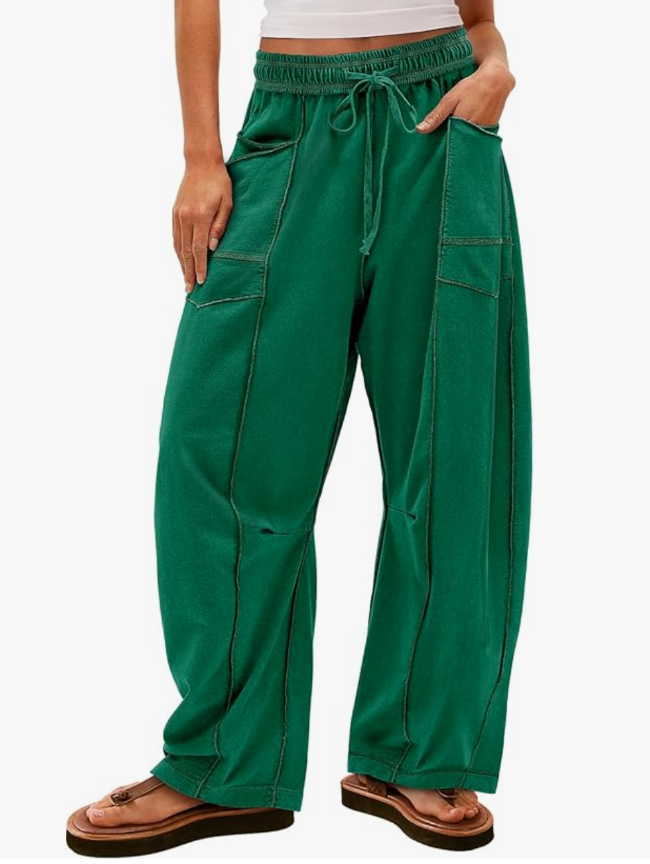 Elastic-waist trousers that feel like pajamas but somehow look business casual. Wear them with slides and a tee or dress them up with heels.