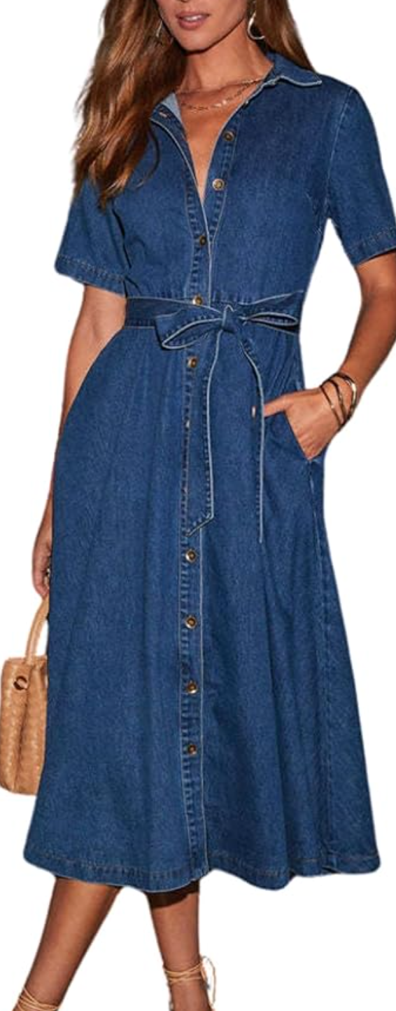 Look for a belted shirt dress or something with subtle shape built in. It’ll work for casual Fridays and casual wine nights.