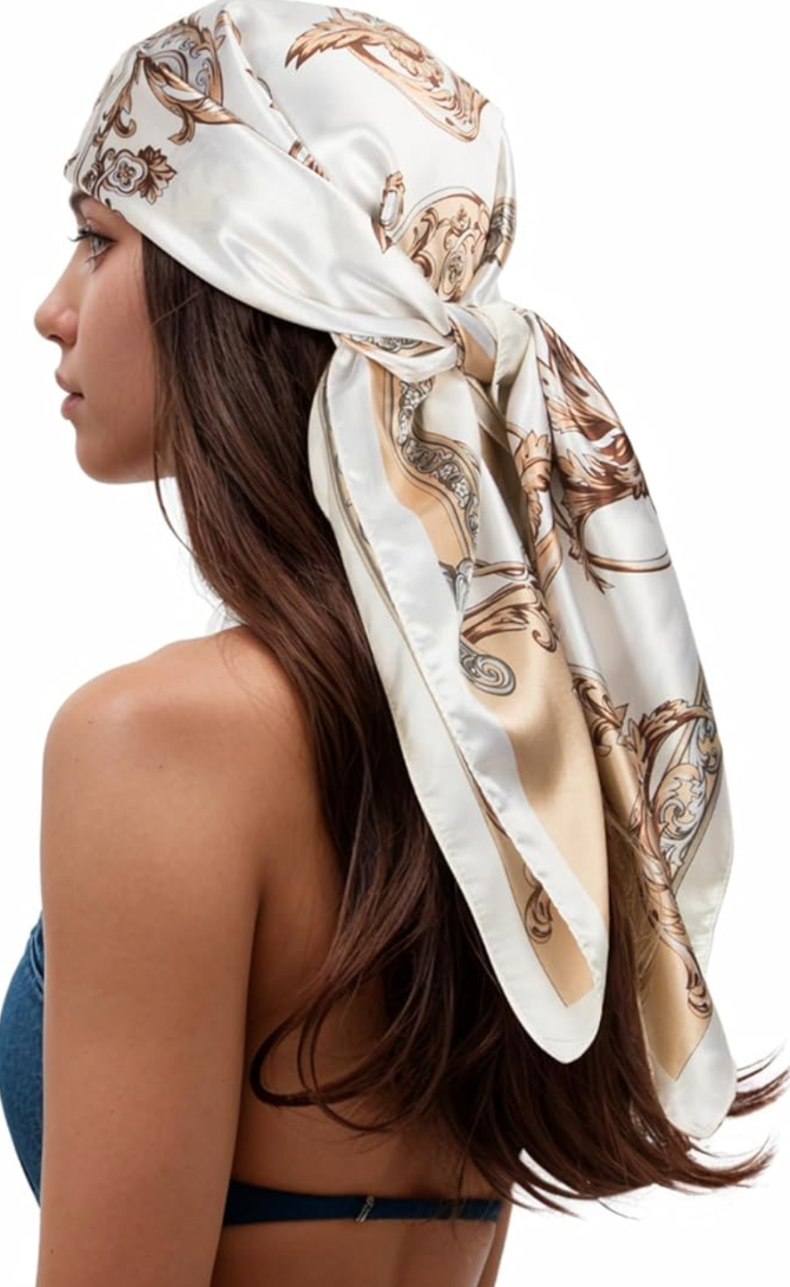A printed scarf (worn as a headband or tied to your bag) fakes a full-on aesthetic.