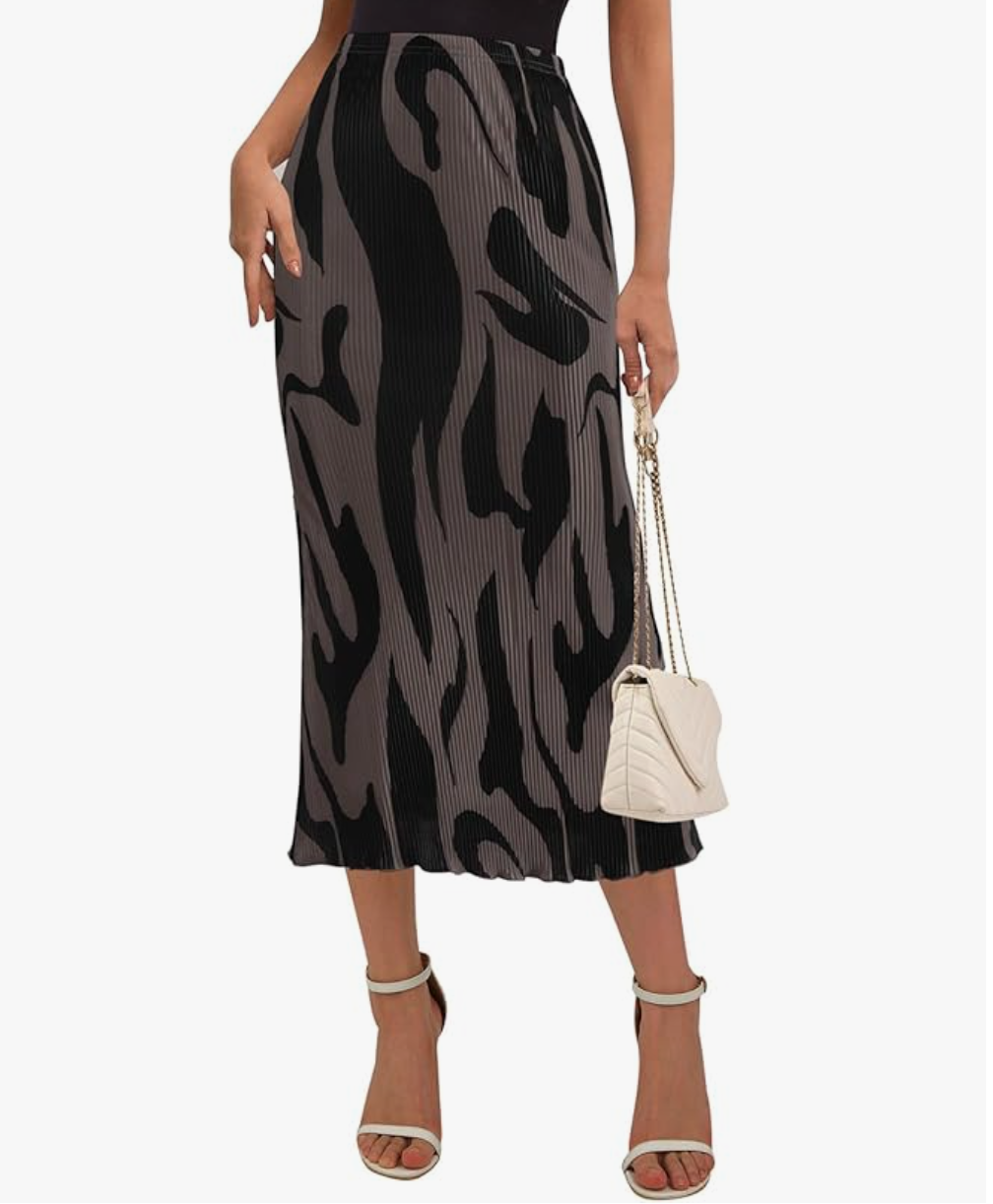 A-line midi skirts with stretch. Forgiving at the waist, breezy at the hem. Bonus points if it’s printed—no one will notice anything else.