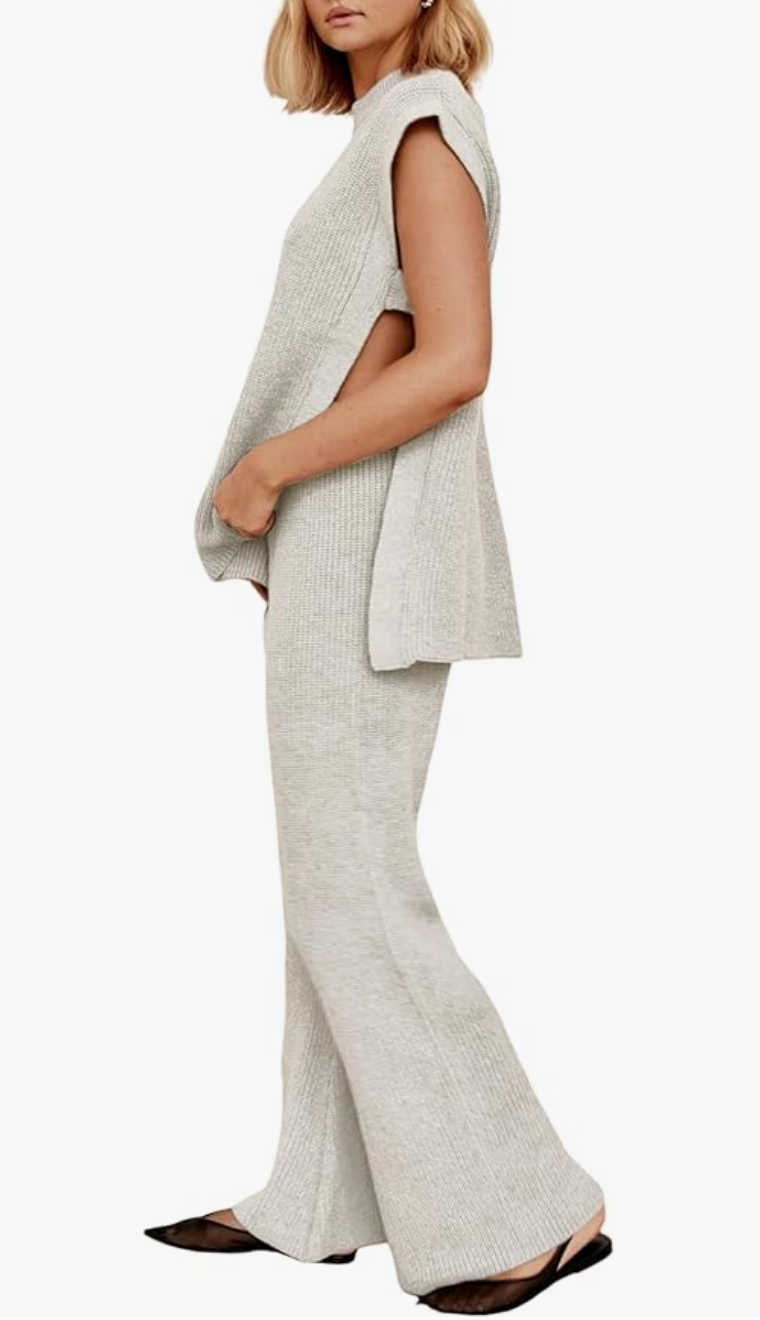 A knit matching set that looks like a full outfit but feels like loungewear. Easy to mix with other things too.
