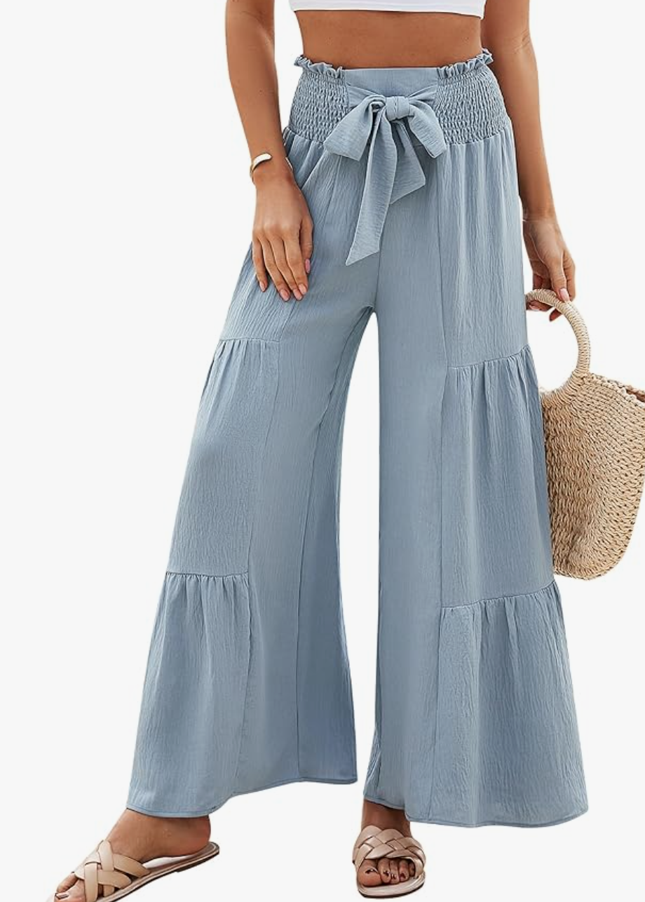 A pair of wide-leg pants in a breathable fabric (linen, cotton twill) will do more heavy lifting than any other piece in your summer wardrobe.