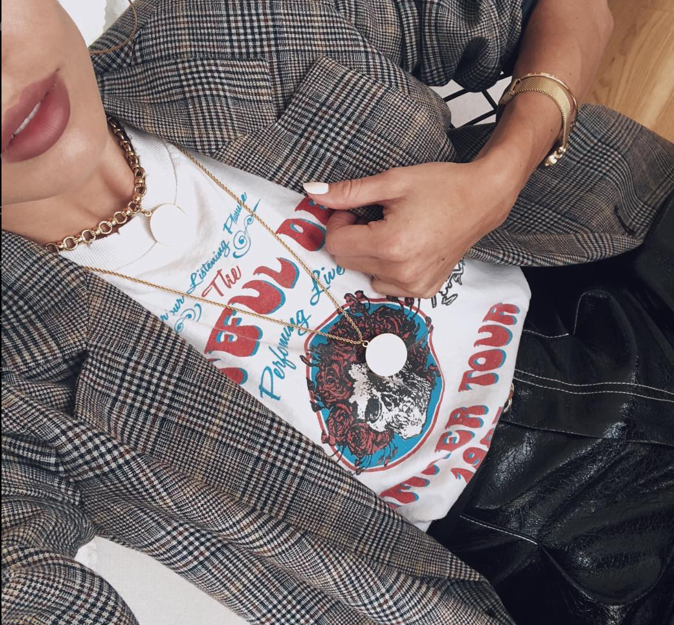 If you’ve ever been told that you can’t mix prints, this look is here to prove them wrong. This is for my maximalist besties who love a "more is more" vibe but still want to look chic and curated. By using a graphic tee as your base, you can actually bridge the gap between two different patterns, like a classic plaid and a gritty, vintage-inspired print.