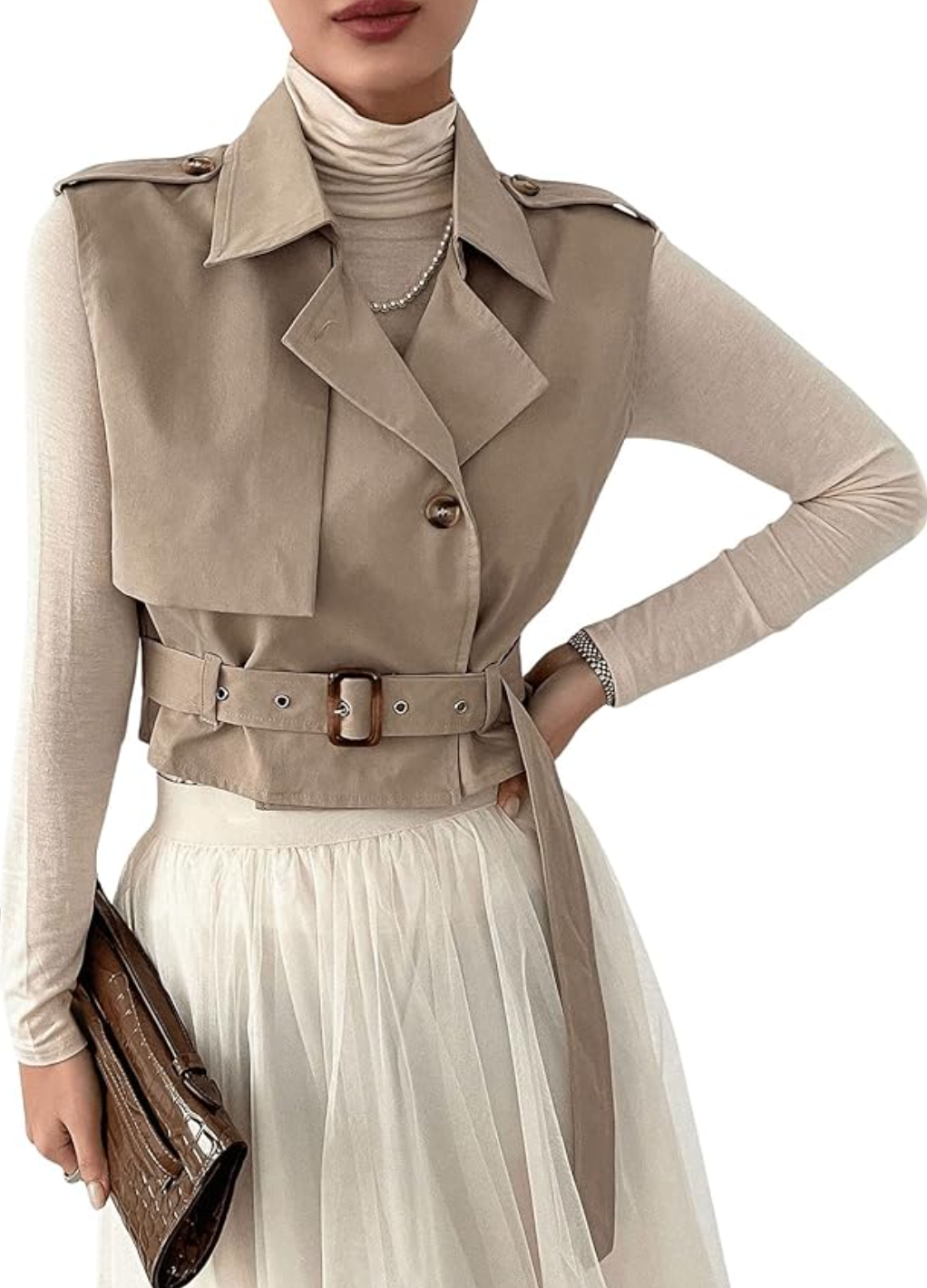 Sleeveless Belted Cropped Trench Coat