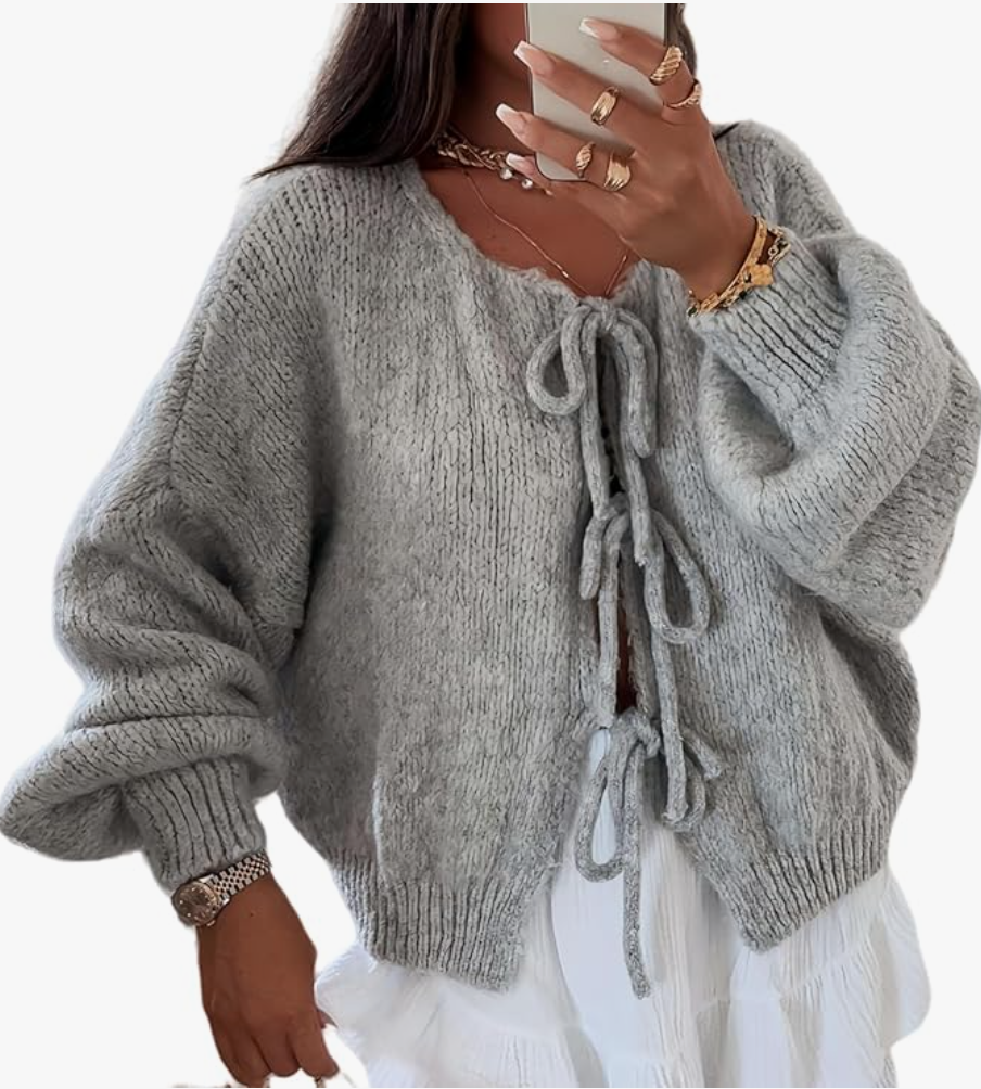 V Neck Cardigan Sweater Bow