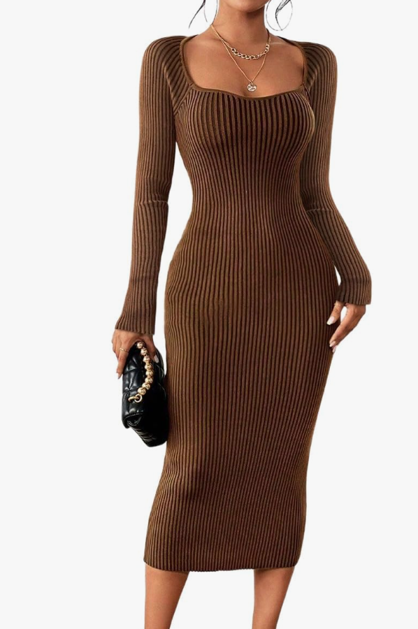 Square Neck Bodycon Sweater Dress