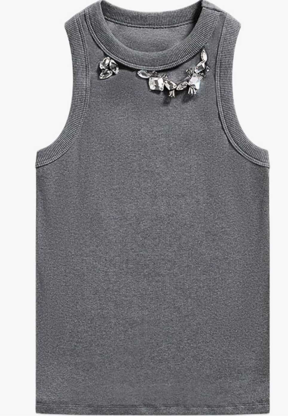 Distressed Crystal Ribbed Knit Tank Top