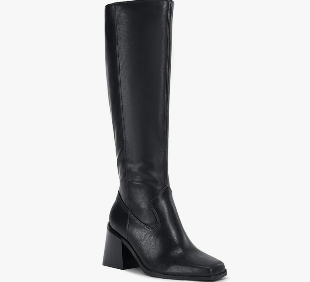 High Boots Wide Calf Square Toe Chunky Heeled Pull-on Boot