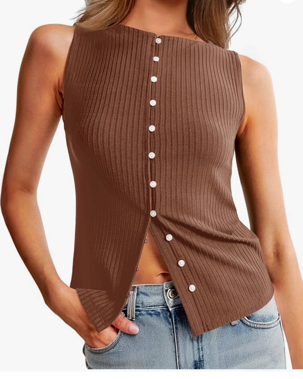 Button Down Ribbed Tank Top