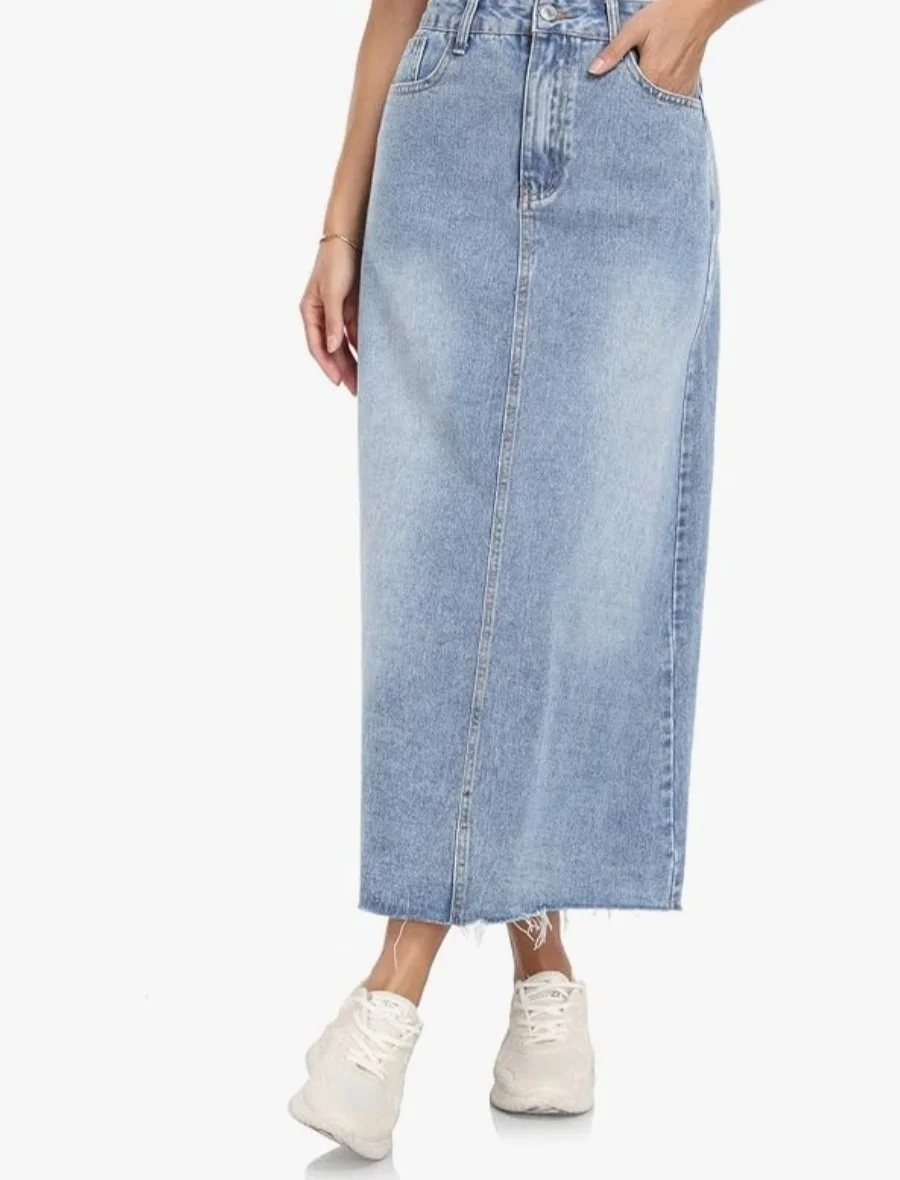 Denim Midi Skirt with Pockets