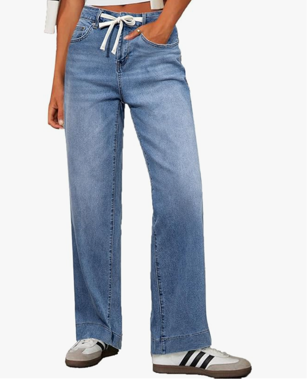 Wide Leg Jeans High Waisted Stretchy Straight Leg Baggy Drawstring