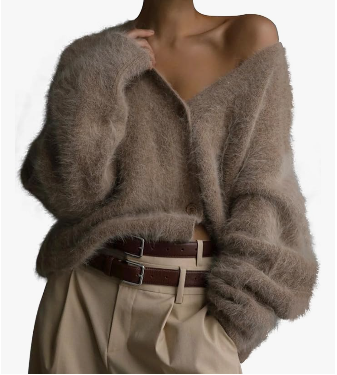 This is your “I’m not leaving the house but still want to look chic” piece. It’s warm, effortless, and looks instantly put-together with wide-leg trousers or faux leather leggings.