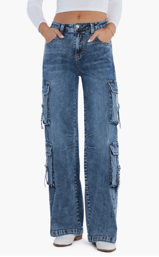 High Waist Straight Leg Cargo Jeans
