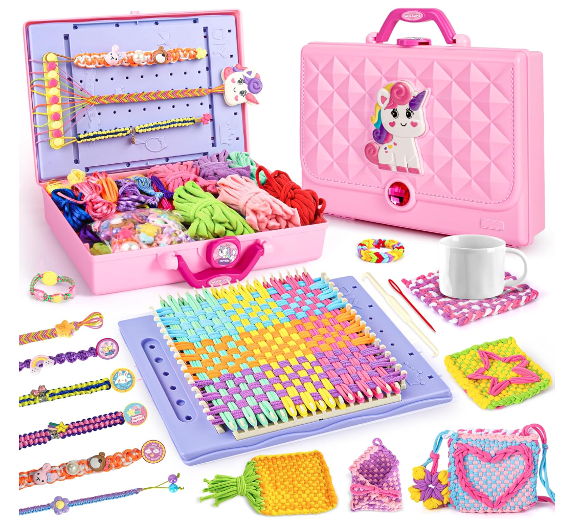 For tweens who love texture and patterns, a mini weaving loom feels delightfully hands-on. They can create wall hangings or coasters while watching their favorite shows — a win for both creativity and calm.