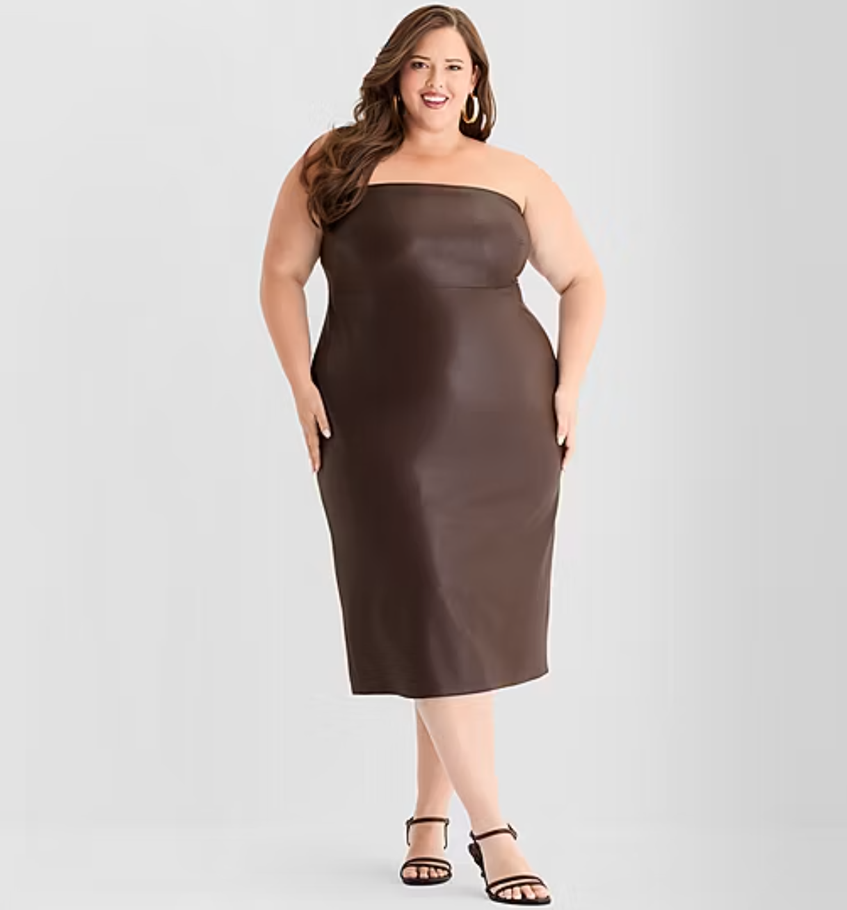 Plus Sleeveless Midi Faux Leather Sheath Dress