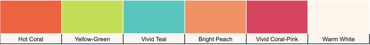 Hot coral, vivid yellow-green, electric turquoise, bright warm orange, vivid warm red, coral pink. Bright Spring can wear the most saturated warm colors of any season — the high chroma coloring demands equally vivid colors to come alive.