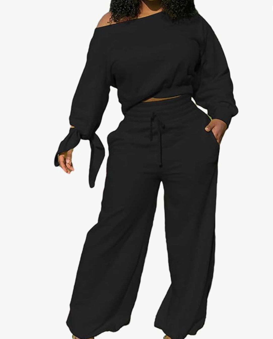 2 Piece Outfits Sweater Set Wide Leg Pants High Neck Sweatsuit