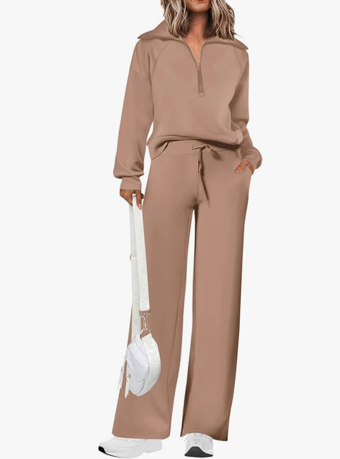 Casual Lapel Half Zip Sweatshirts and Wide Leg Pants