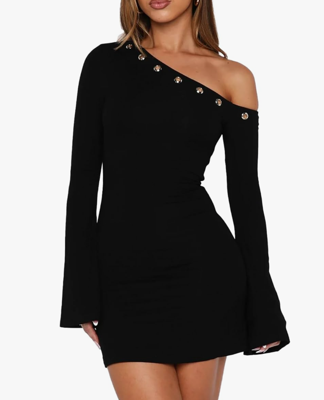 Off The Shoulder Long Flared Sleeve Mini Dress