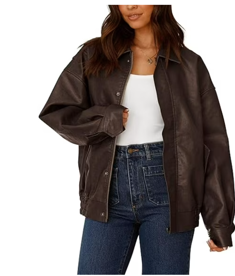 This piece adds instant edge and works with both feminine and laid-back outfits. Perfect for transitional fall days when you need something lighter than a wool coat but still substantial.