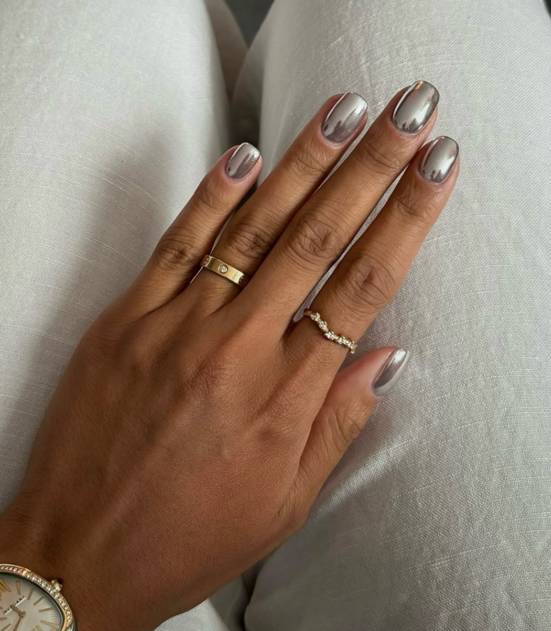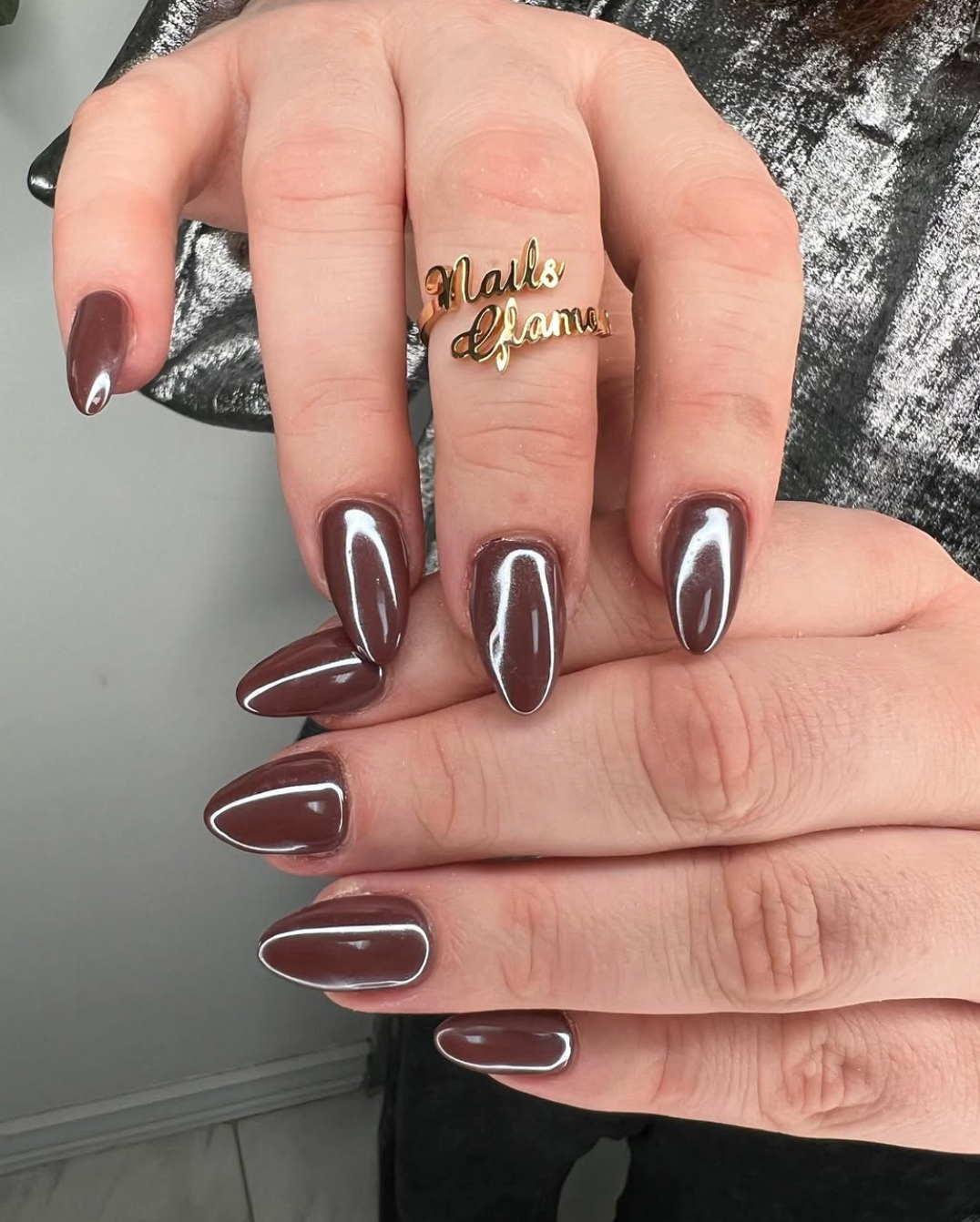This is fall’s answer to the “glazed donut” trend. Think rich brown tones with a sheer, glossy chrome on top.