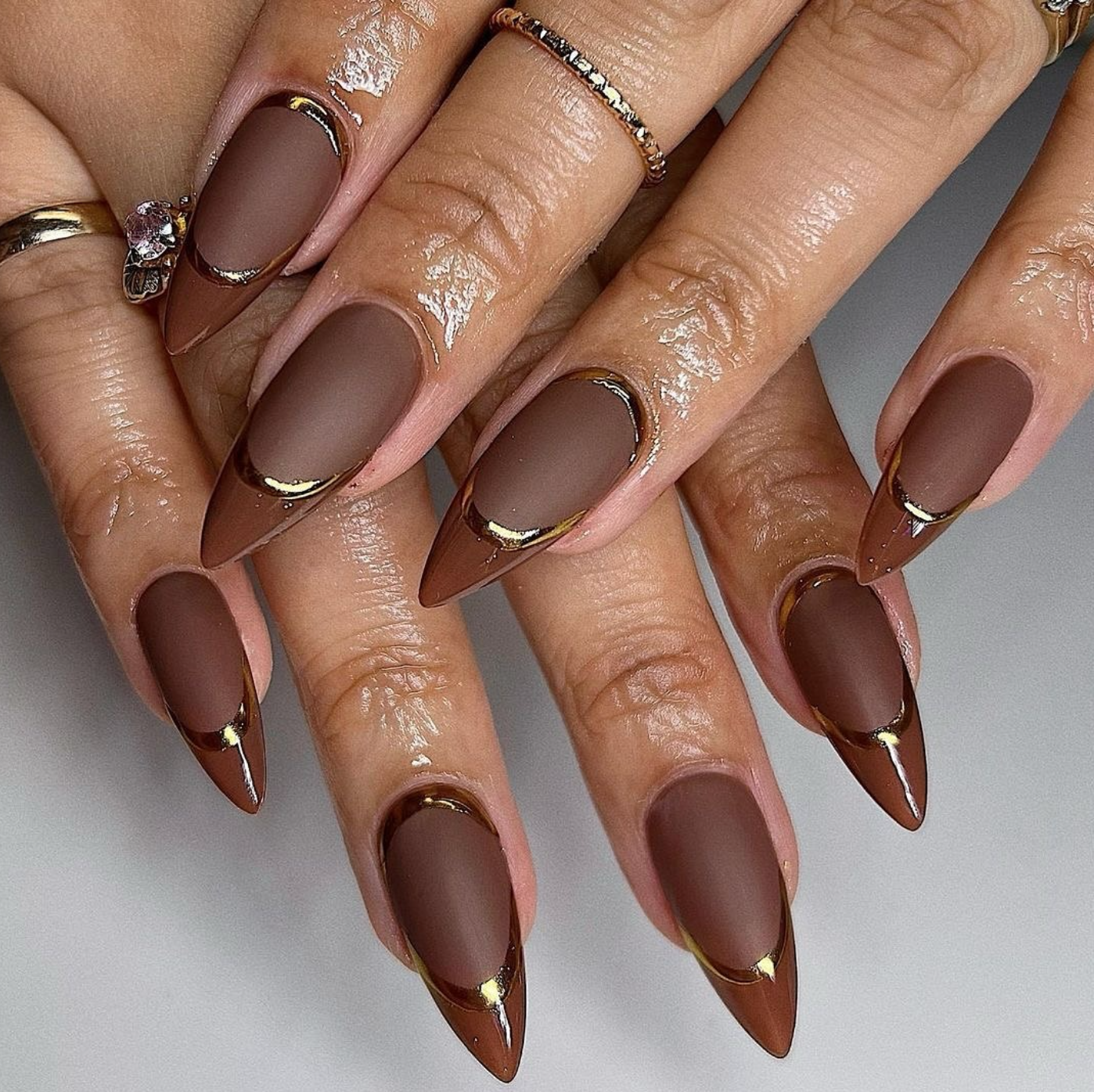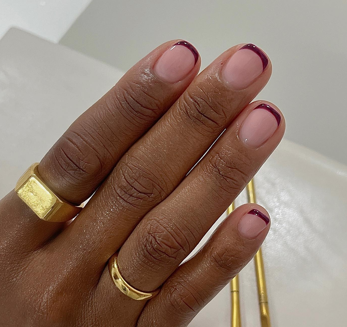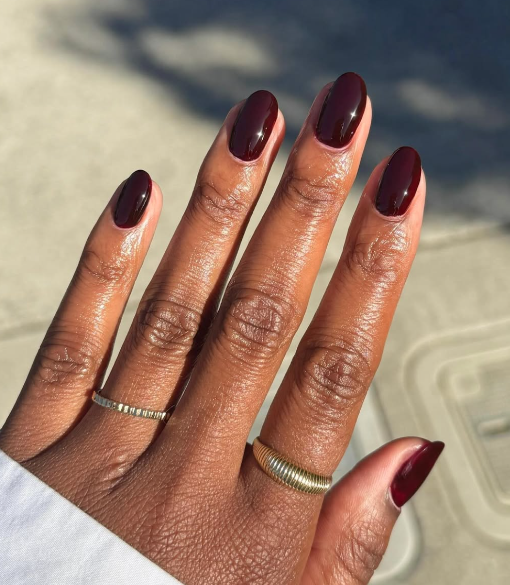 Not quite black, not quite brown—just a moody, delicious in-between. Go for short square tips or almond shapes to keep it chic.