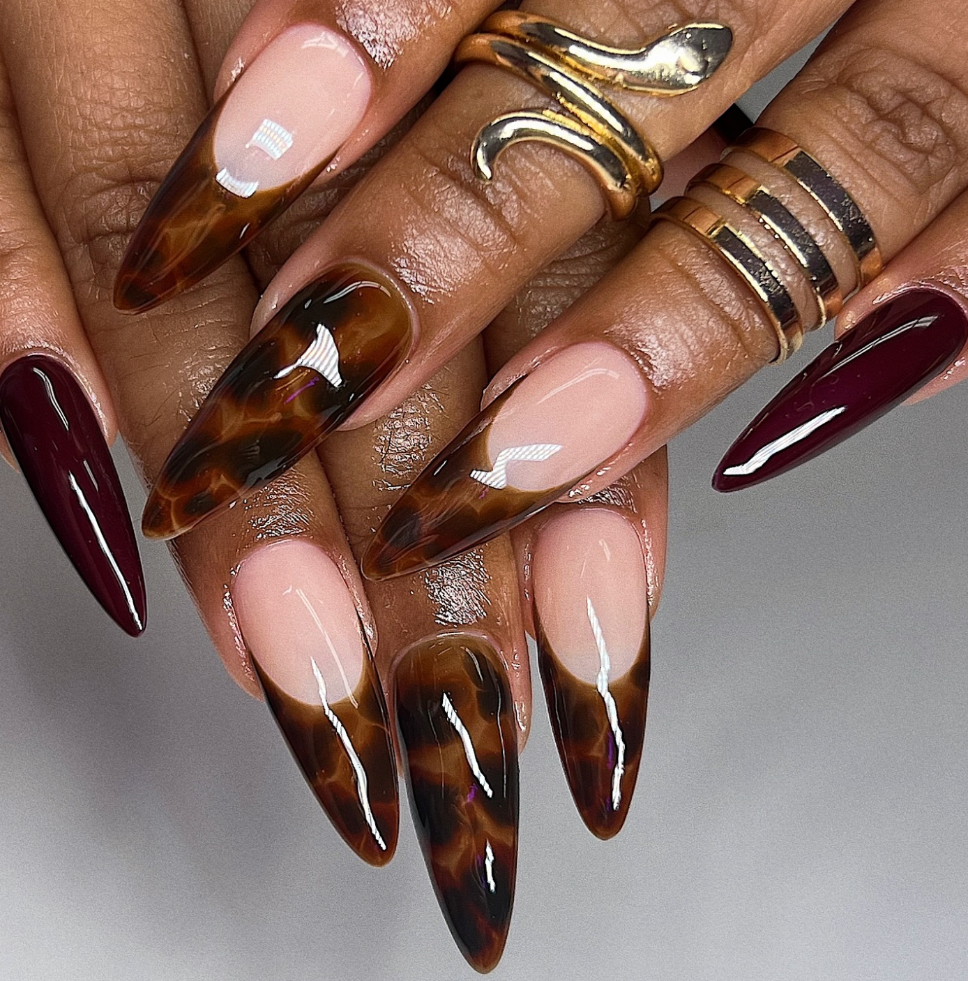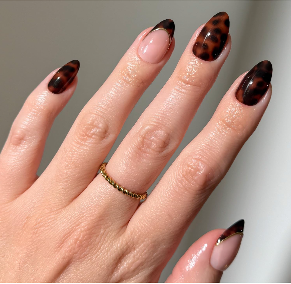 One or two accent nails in tortoiseshell? Yes, please. It adds just enough texture without being too much—and it looks great with denim or leather.