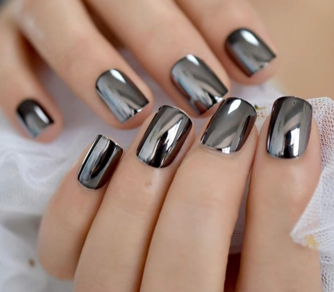 Smoky Gray Reflective Mirror Metal Press On Nails