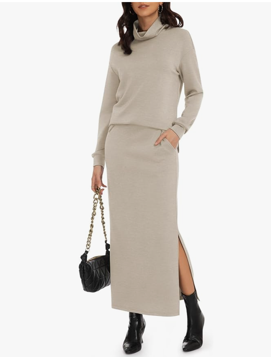 Equal parts cozy and composed, this combo is quietly dominating office-to-dinner wardrobes. Think ribbed fabrics, midi lengths, and boots that mean business. Add a trench coat or leather jacket, and you’ve got a one-and-done outfit that gives main character energy.