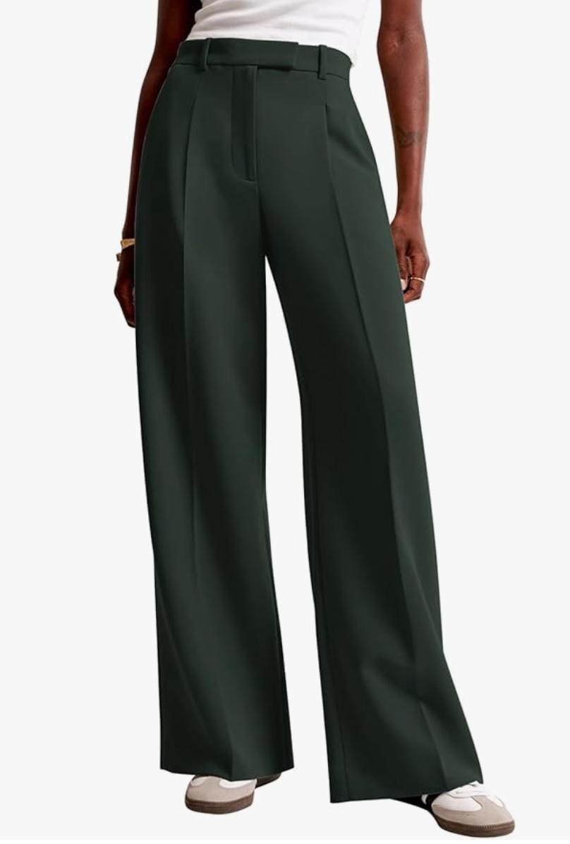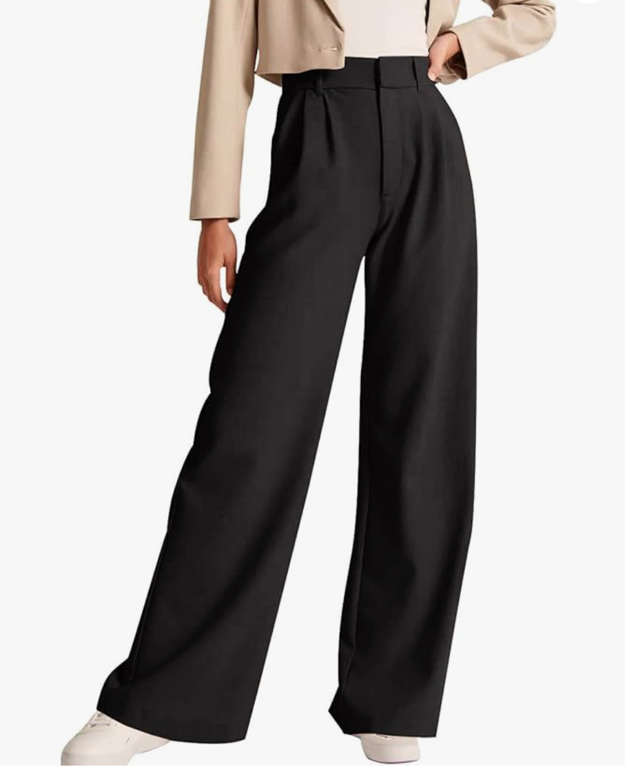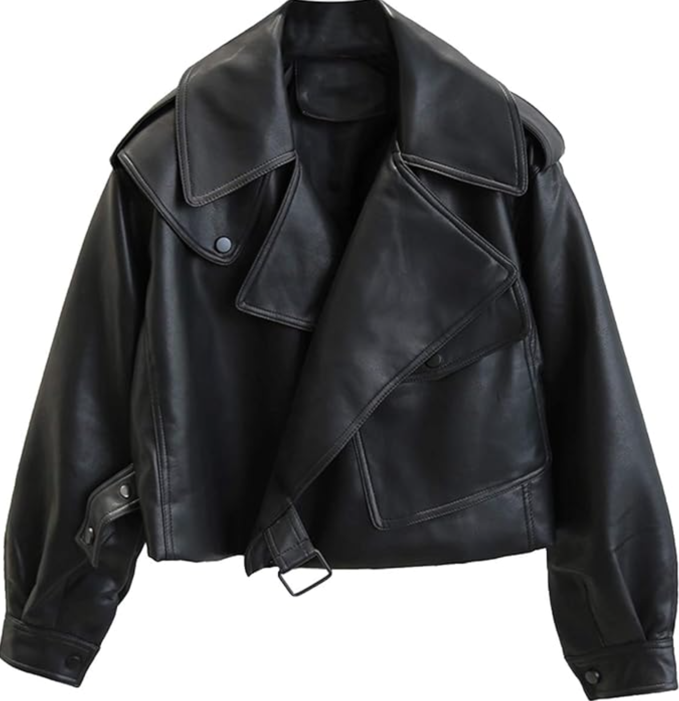 Nothing says “I didn’t overthink this” like a black ribbed top, leather jacket, and wide-leg trousers. Add bold earrings, and you’ve got the perfect fall night-out look without the closet meltdown.
