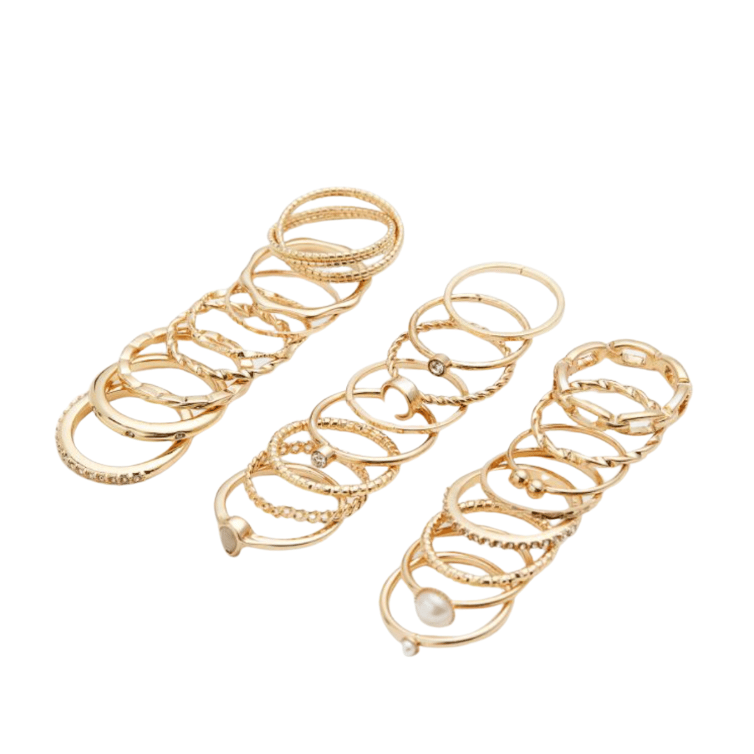 Stack and mix H&M's 24-Pack Rings for a trendy, layered look. These gold-colored metal rings come in various designs and sizes, making it easy to create your unique combination.