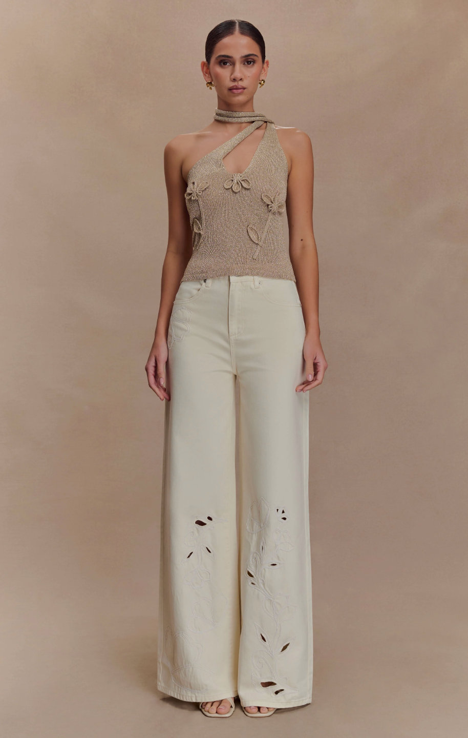 LeoneOne Shoulder Metallic Knit Top - Gold