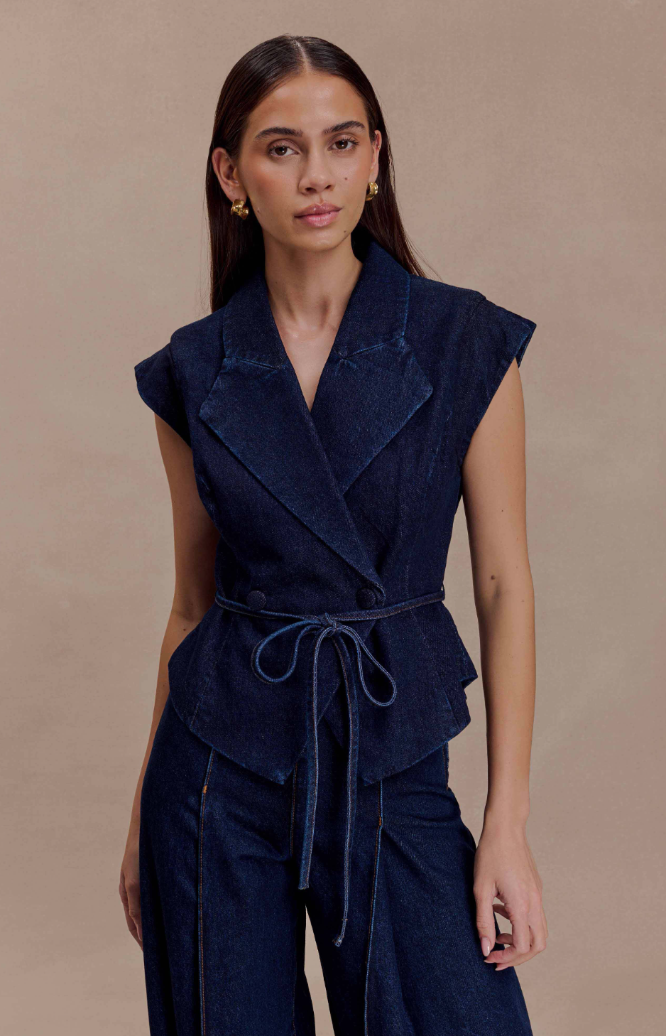 Jericho Asymmetrical Denim Shirt - Classic Blue