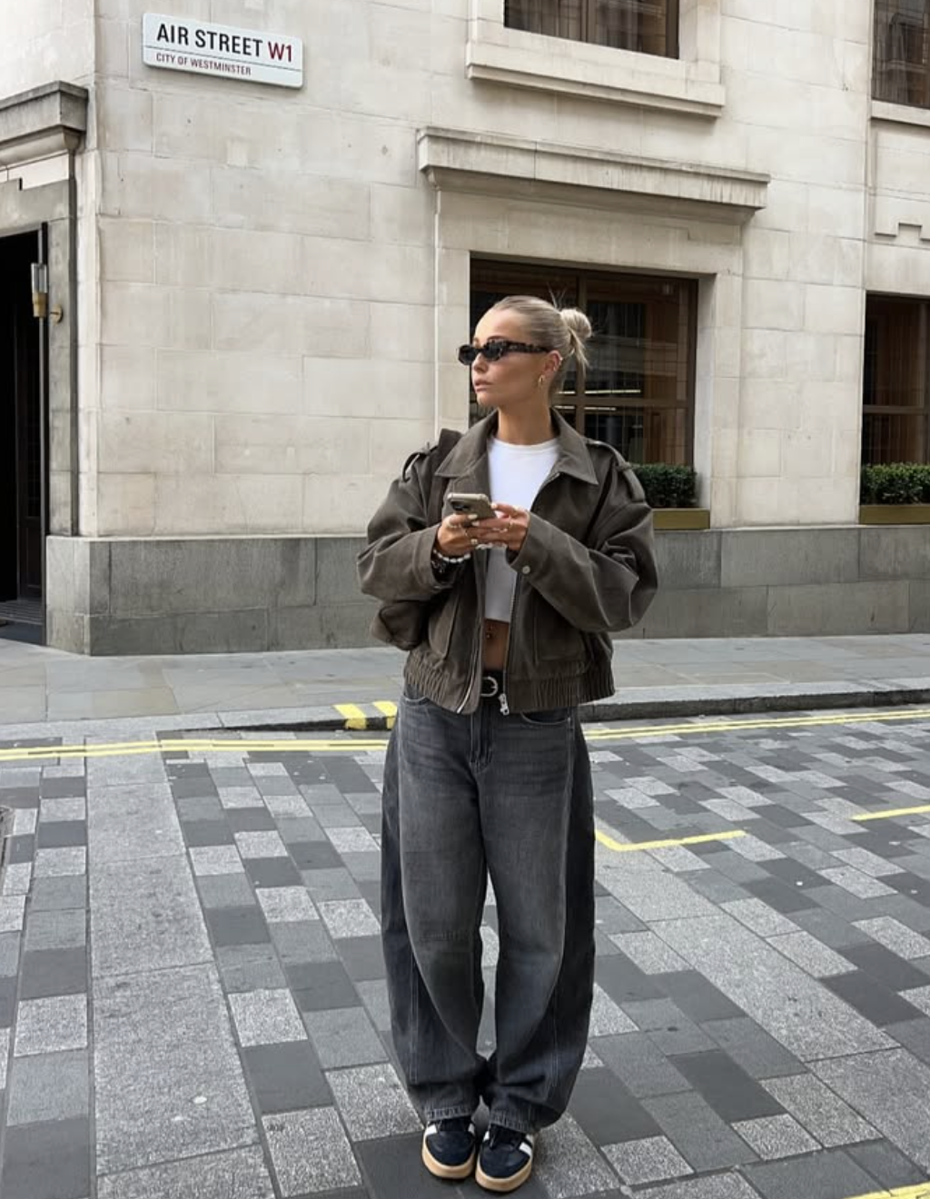 For fall, stick to jackets that define the upper body. Cropped jackets, fitted blazers, and shorter coats work best with barrel jeans. If wearing a longer layer, keep the rest of the outfit streamlined to avoid adding too much volume.