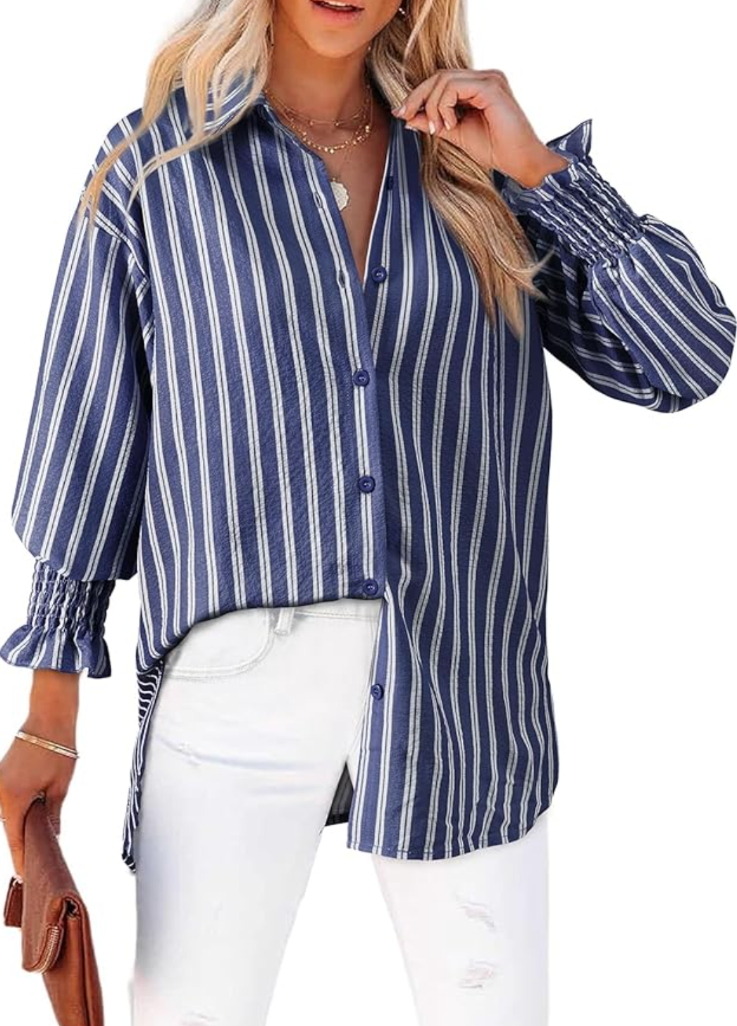 1. Striped Button-Down + White Jeans + Sleek Sandals