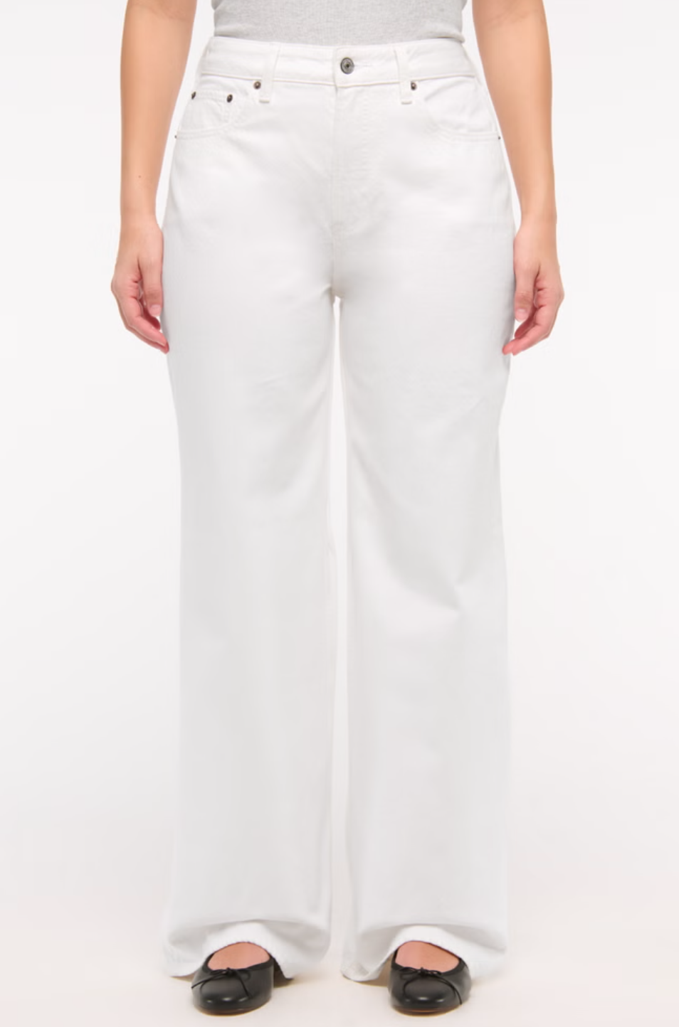 Perfect for transitional weather when you don’t want to wear dark denim. Add a leather belt to pull it together.
