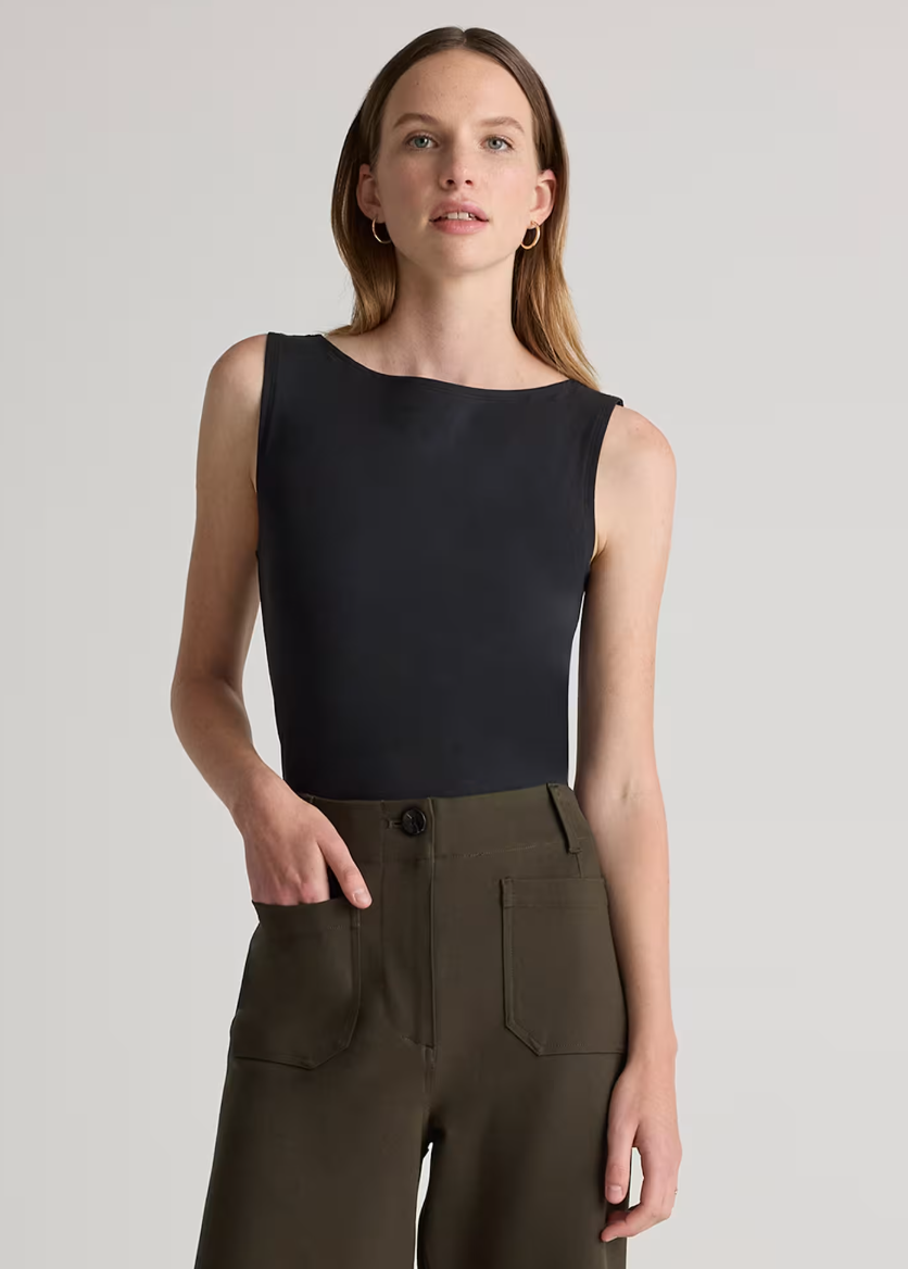 2. Black Tank + White Wide-Leg Jeans + Pointy Flats