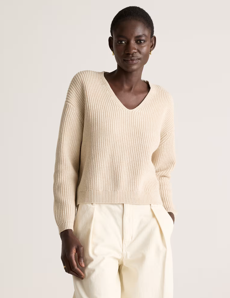 5. Monochrome Neutrals: Cream Sweater + White Jeans + Beige Accessories