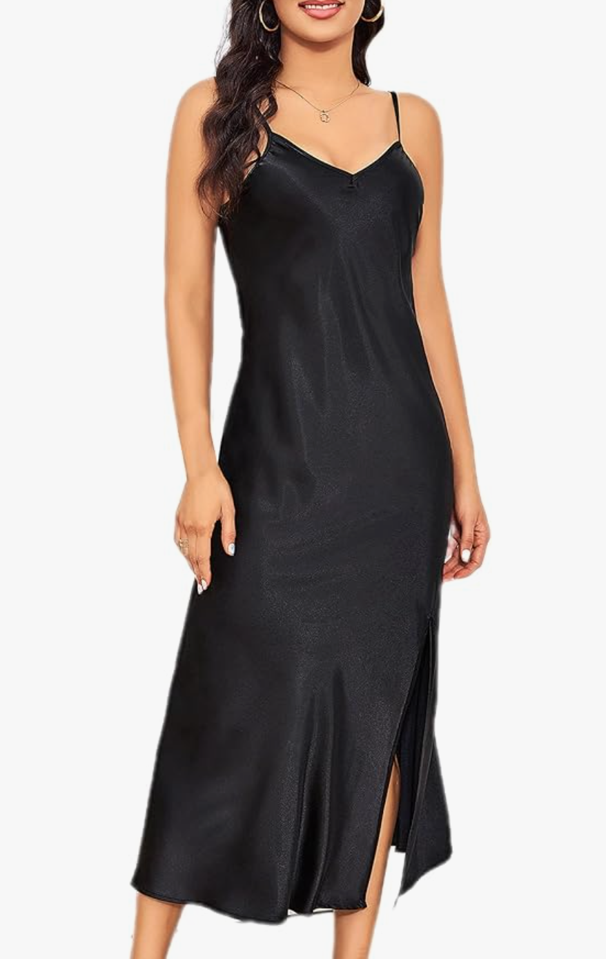 A satin slip dress paired with a dark-wash jean jacket is one of the easiest ways to make a dress feel wearable for daytime.