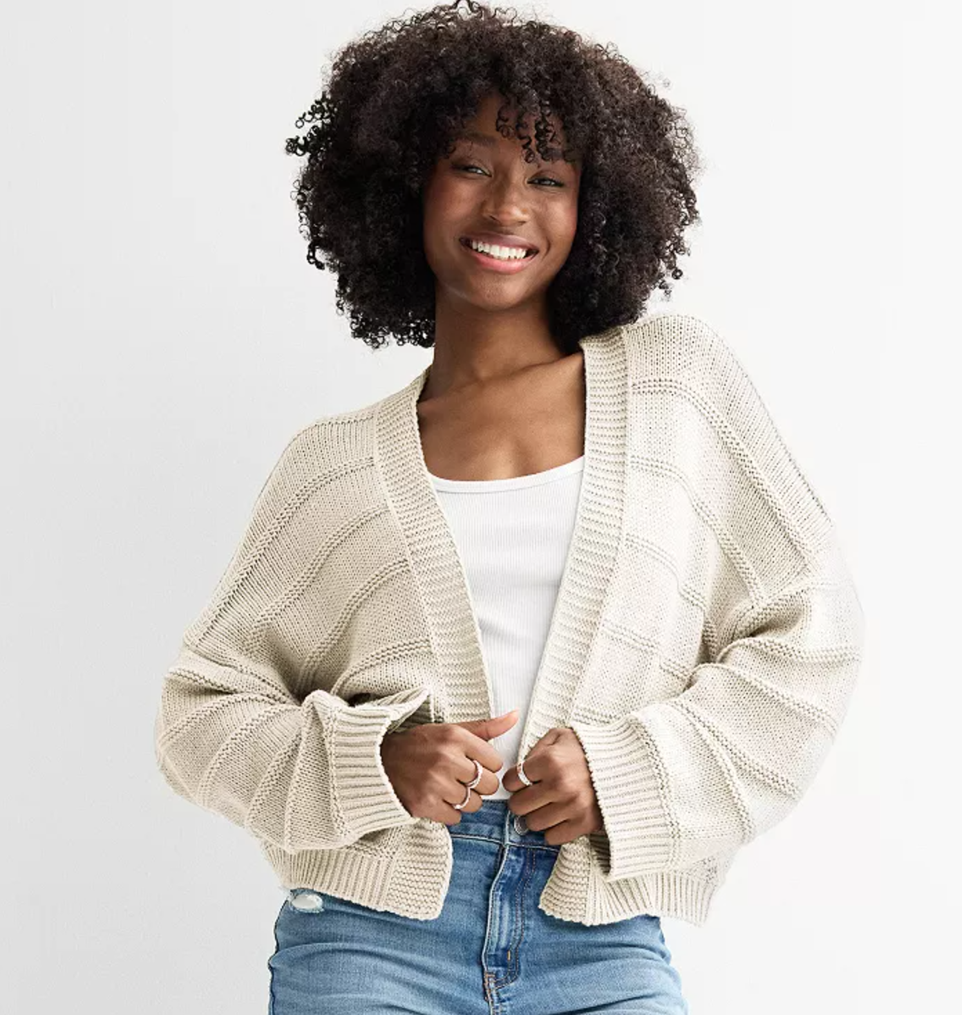 A cropped cardigan, relaxed jeans, and ballet flats. It’s giving French girl, but make it Midwest-practical.