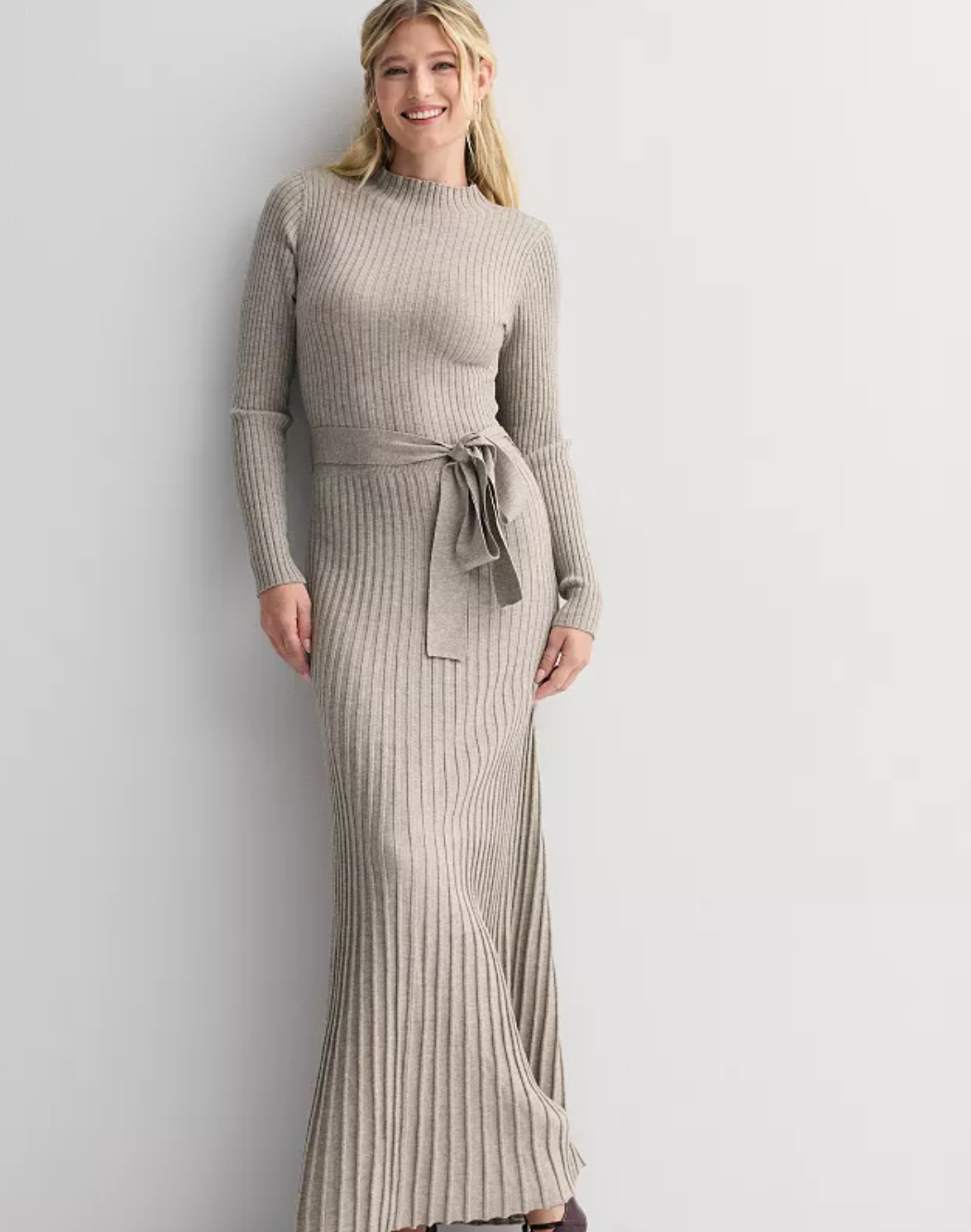 Fit & Flare Rib Knit Maxi Sweater Dress