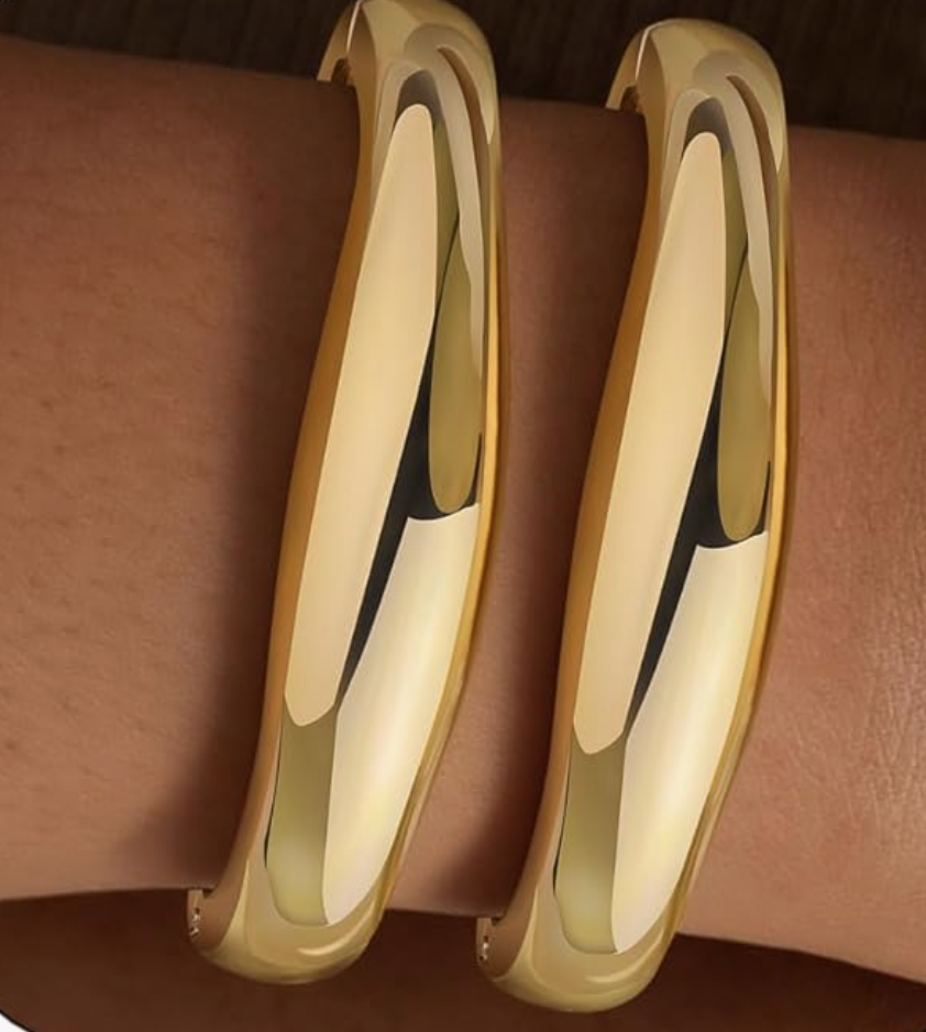 Whether it’s sculpted metal or a thick resin piece, a cuff adds structure—especially when your outfit’s soft and casual.