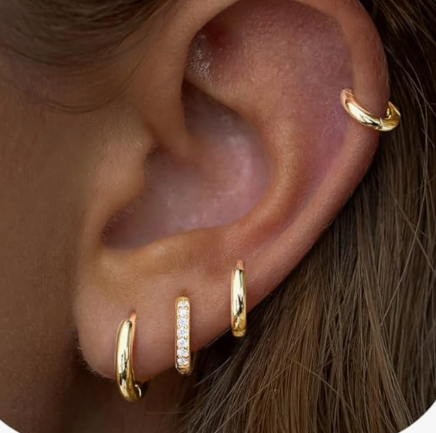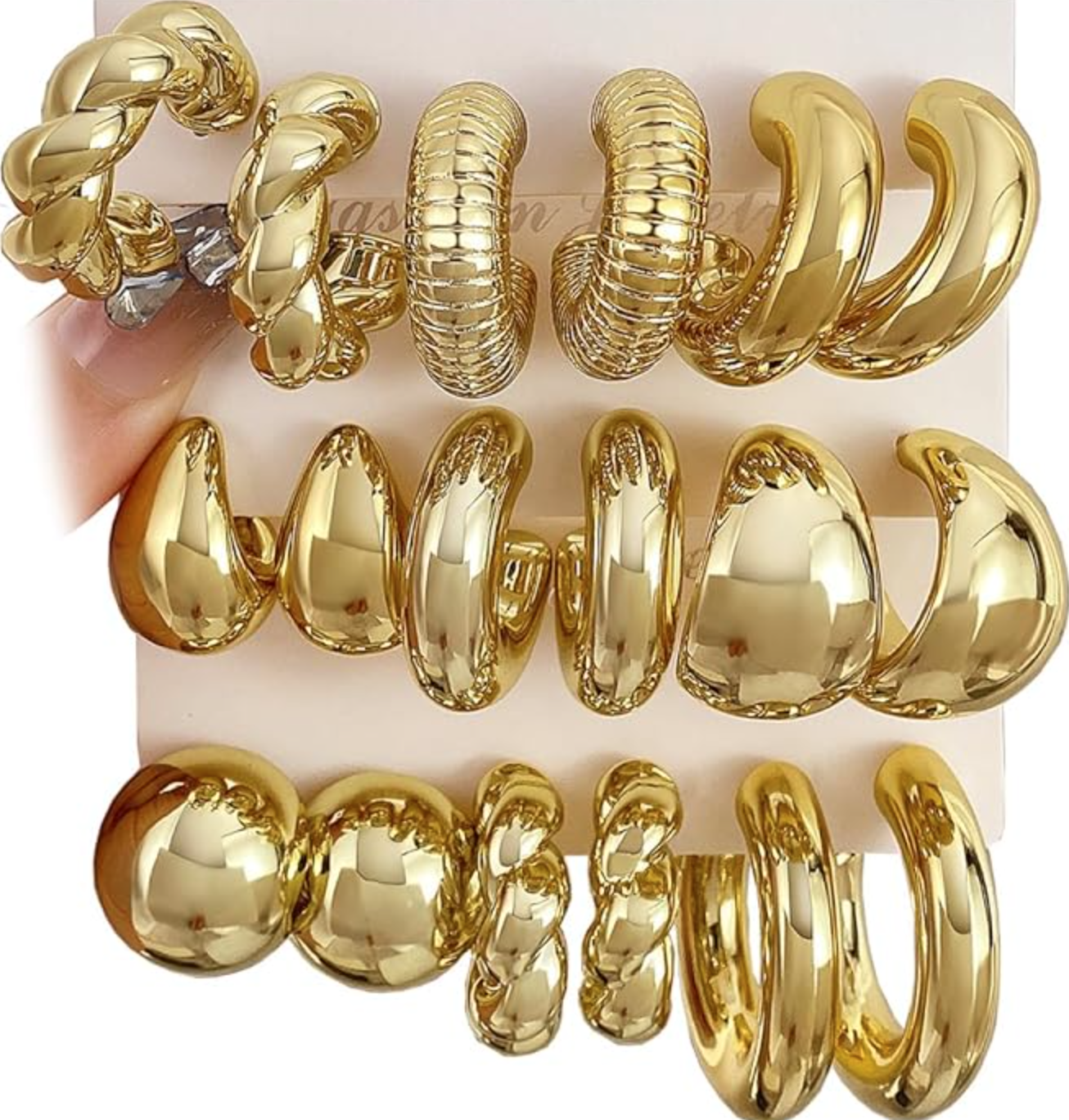 Chunky gold hoops are the MVP of looking put-together. They work with a sweatshirt, a dress, or your “I tried” jeans.