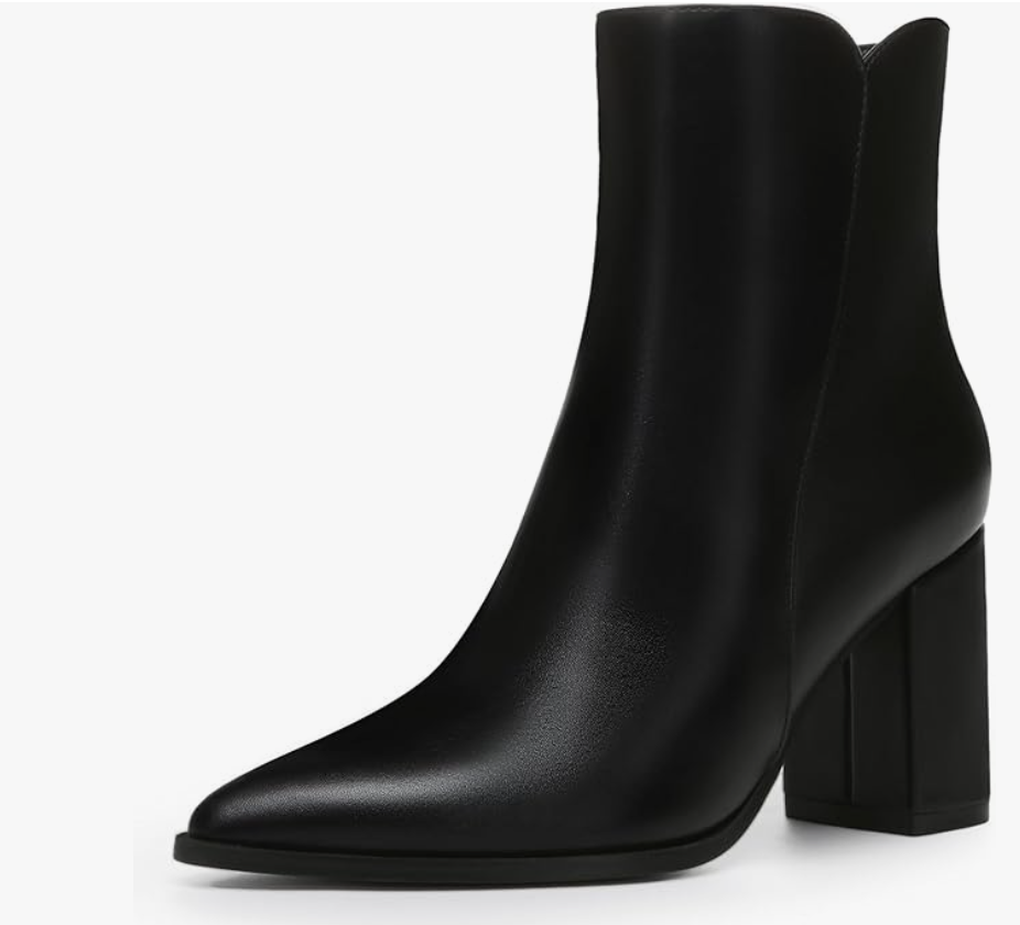 Pointed Toe Chunky Block Heel Side Zipper Short Booties
