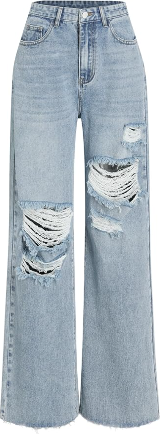High Waisted Distressed Baggy Straight Wide Leg Jeans