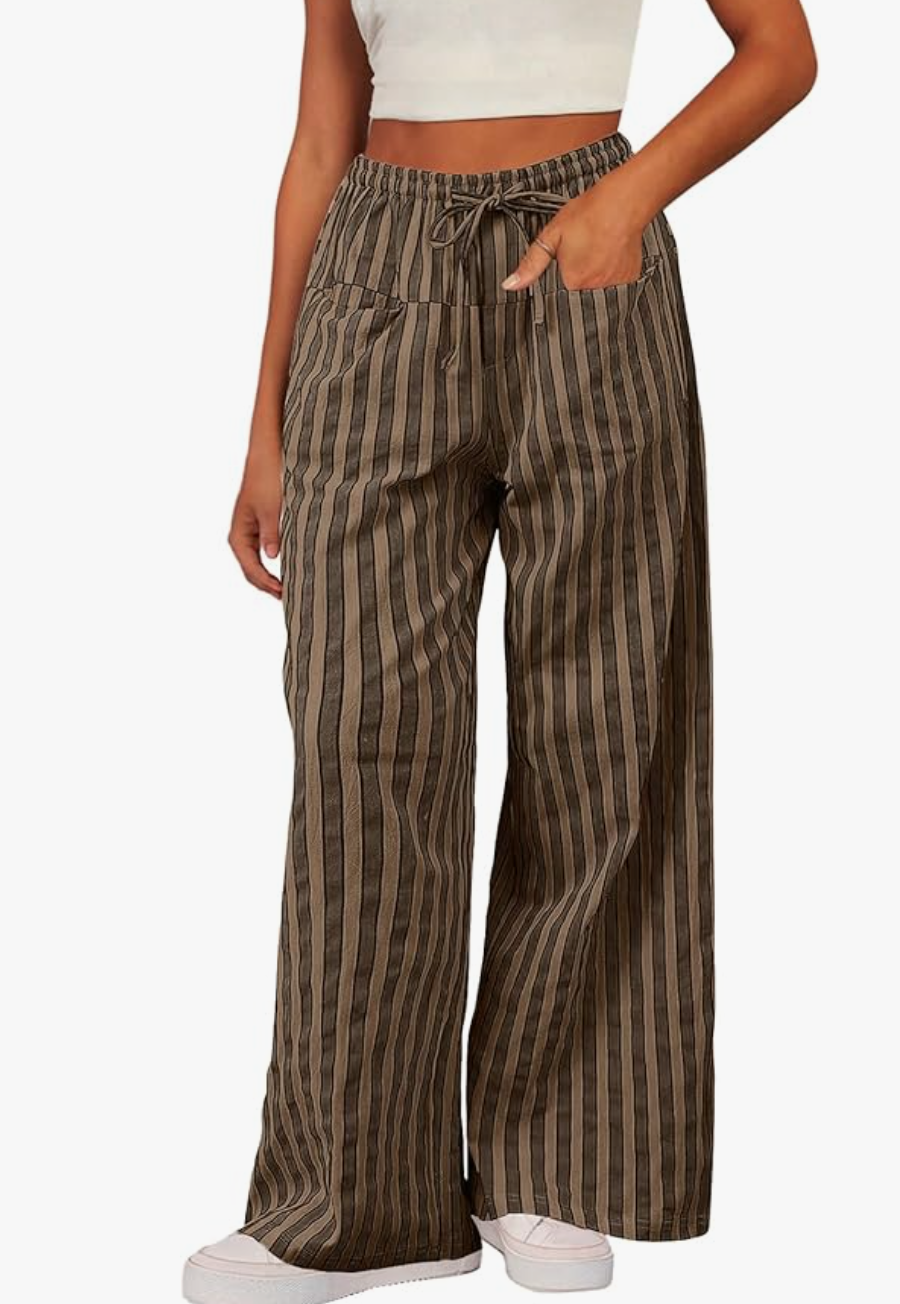 Casual Drawstring Elastic Waist Loose Wide Leg Striped Pants