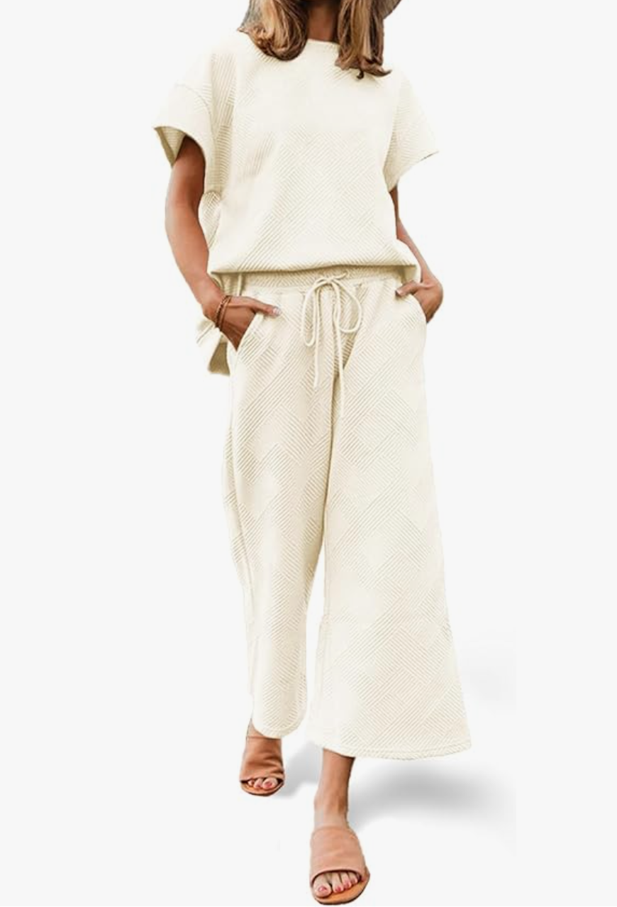 Short Sleeve Tops and Drawstring Waist Cropped Wide Leg Pants