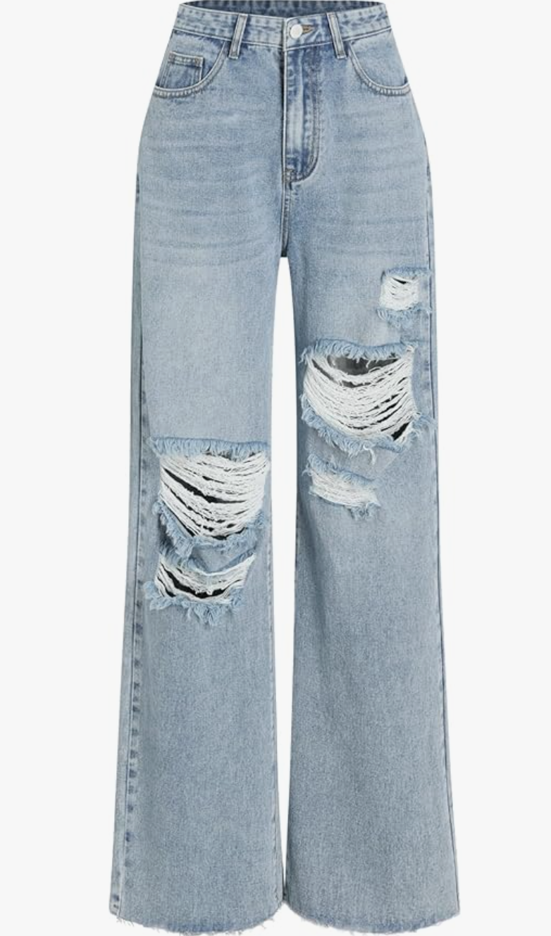 Casual High Waisted Jeans Stretch Wide Leg Loose Denim