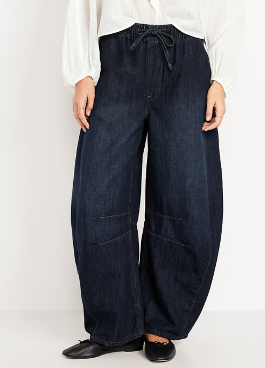 High-Waisted Pull-On Barrel Jeans